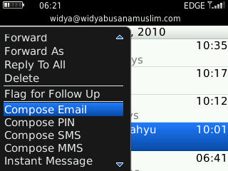 Bingung, cek sana sini, dibandingkan dengan kepunyaan saya, ternyata ada perbedaan di sisi versi Blackberry-OS (Operating Sytem). Anda bisa mengeceknya melalui menu Options | About. Jika milik istri versinya v5.0.0.592, sedangkan kepunyaan saya memiliki versi v5.0.0.794. Kemungkinan inilah penyebabnya : versi lama memiliki bug di core systemnya. Tak ada gading yang tak retak bukan? Tapi sayangnya tak ada release resmi dari blackberry di website resminya. Tak patah semangat, coba cari referensi lain lewat forum-forum blackberry di internet, dan akhirnya ketemu solusinya 🙂 . Berikut ini adalah tips jika Anda mengalami problem seperti di atas :
