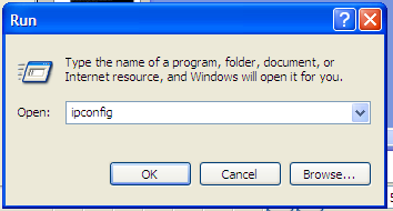 1. Cek dulu ip address komputer, pastikan sudah mendapat IP dari DHCP server atau set dulu IP addres secara manual. Untuk mengecek Ip caranya adalah sbb : dari menu Start Menu pilih menu ‘Run’, kemudian ketik ‘ipconfig‘