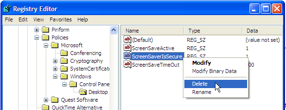 sy tidak menemukan windows\controlpanel\desktop screensaverlssecure, mohon solusinya