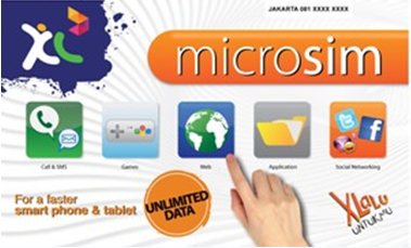Dapatkan Micro SIM pra bayar di XL Center dan dealer dengan harga Rp5ribu, sudah termasuk paket internet sepuasnya (Unlimited) 1 hari. Selanjutnya pelanggan akan dikenakan biaya berlangganan paket internet sepuasnya harian Rp5ribu atau pelanggan dapat melakukan top up sebesar Rp100rb dilanjutkan dengan registrasi paket internet sepuasnya (unlimited) bulanan Rp99ribu bonus 150 Menit bicara, 150 SMS dan 15 MMS ke sesama XL. Untuk registrasi paket internet sepuasnya baik harian ataupun bulanan Unlimited cukup ketik *123*400#.