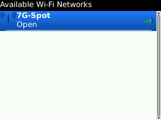 Gambar di atas menunjukkan SSID yang tertangkap oleh Blackberry handset yang diaktifkan WIFI-nya. 7G-Spot maksudnya : 7=sapta, G=ji (bahasa inggris) jadi 7G-Spot artinya “Saptaji-hotspot” 🙂