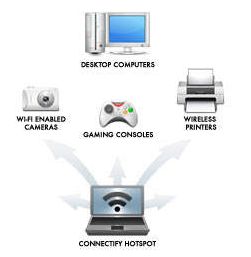 Satu lagi software yang dapat meng-utilize Winpad Anda. Adalah ‘Connectify’ yang merupakan software yang mampu menjadikan winpad Anda menjadi sebuah WIFI hotspot dan melakukan sharing internet ke perangkat yang terhubung dengannya. Hebatnya lagi software ini benar-benar free alias gratis. Syarat instalasi connectify cuma satu, yakni perangkat Anda harus berjalan di Operating system Windows 7 (atau Android) dan tentunya harus ada perangkat WIFI/WLAN-nya. Kalau biasanya laptop atau tablet kita bekerja sebagai client dari sebuah jaringan hotspot, maka dengan connectify, justru laptop atau tablet kita berfungsi sebagai pusat/source hotspot. Dengan demikian jika laptop/tablet Anda memiliki/terhubung dengan internet melalui modem, maka koneksi internet ini akan ikut disharing dengan client-client hotspot connectify. Jadi, connectify akan mengubah WIFI dongle di laptop/tablet Anda dari fungsi client menjadi fungsi router. Bisa dikatakan ada fungsi router karena connectify melakukan proses NAT (Network Address Translation) dalam melakukan ICS (Internet Connection Sharing). Client-client hotspot nantinya akan diberikan IP local, dan akan mampu terhubung ke internet melalui IP gateway, yaitu IP di perangkat yang terinstal connectify.