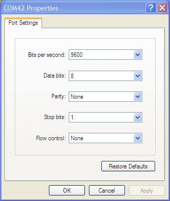 Langkah berikutnya adalah melakukan setting parameter koneksi serial. Secara umum semua tipe modem mendukung baudrate 9600. Oleh karena itu tekan saja tombol ‘Restore default’