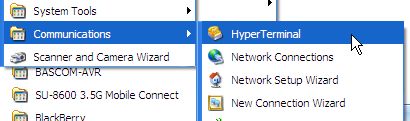 Hyperterminal ini dapat Anda temukan melalui menu Start | Accessories | Communications | HyperTerminal.
