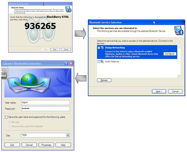 Bagi Anda yang pernah/sering menggunakan Blackberry dalam mode tether ini biasanya menggunakan kabel data untuk menghubungkan handset Blackberry dengan laptop/desktop. Jika Anda menggunakan cara ini Anda diharuskan menginstal software ‘Desktop Manager’ Blackberry, dan melakukan extra initialization di settingan modem (Anda bisa searching di Google utnuk cara ini). Nah ini mungkin agak ribet bagi Anda yang terbiasa klak-klik aja menggunakan modem 3G 🙂 . Di sini saya akan menjelaskan sedkit trik supaya Anda bisa melakukan tethering Blackberry dengan cara cepat dan tidak perlu menginstal software Desktop Manager. Kunci dari trik ini adalah laptop Anda harus memiliki Bluetooth sebagai pengganti kabel data. Saya pikir semua laptop keluaran terbaru sudah memiliki Bluetooth interface modul, jadi Anda tidak akan kesulitan menggunakan trik ini. Pun, jika laptop Anda tidak memiliki Bluetooth, Anda bisa membeli Bluetooth dongle dengan harga di bawah Rp 100 ribu. Oke, saya anggap Bluetooth Anda sudah siap. Langkah kedua adalah melakukan pairing antara laptop dengan blackberry. Caranya adalah sebagai berikut (pastikan software/driver Bluetooth sudah terinstal dengan baik di laptop Anda).