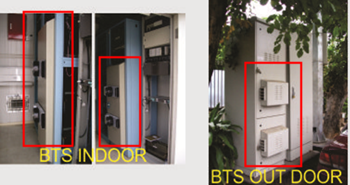 Nah, di sinilah peran DC Cooler dalam menjaga agar suhu ruang baterai tetap berada di 250C. Karena semua perangkat di BTS menggunakan tegangan -48 V maka, DC Cooler ini juga diset pada tegangan kerja -48V. Berikut adalah foto-foto implementasi DC Cooler di sebuah operator seluler di Indonesia.