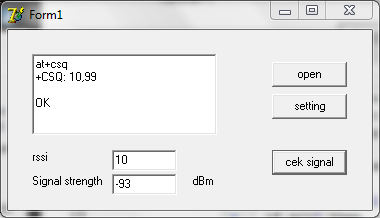 Mengecek signal strength operator menggunakan modem atau handphone dapat dilakukan secara terprogram menggunakan Delphi melalui at command. Untuk mengecek sinyal Anda dapat menggunakan perintah at command ‘AT+CSQ’, dengan keterangan sebagai berikut :