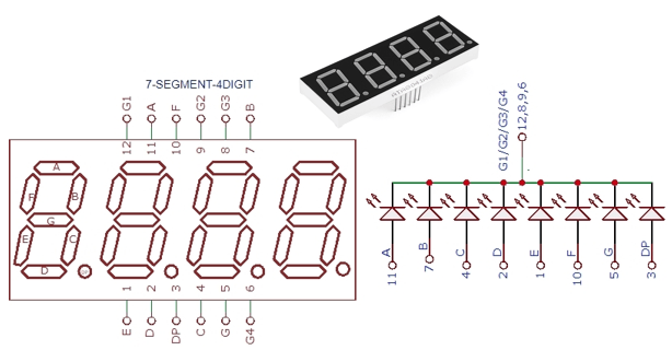 Pin 4 Digit-seven segment G : pin Arduino 6