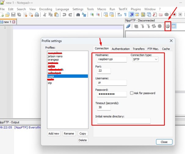 Caranya sebenarnya mudah, bisa langsung Anda baca di artikel “instal NppFTP di Notepad++“. Untuk dapat terhubung dengan Raspberry Pi, Anda dapat mengatur profile NppFTP seperti pada artikel “setting profile NppFTP Notepad++“. Dan untuk mulai konek dengan Raspi Anda dapat membaca artikel “koneksi SFTP ke Raspberry Pi“
